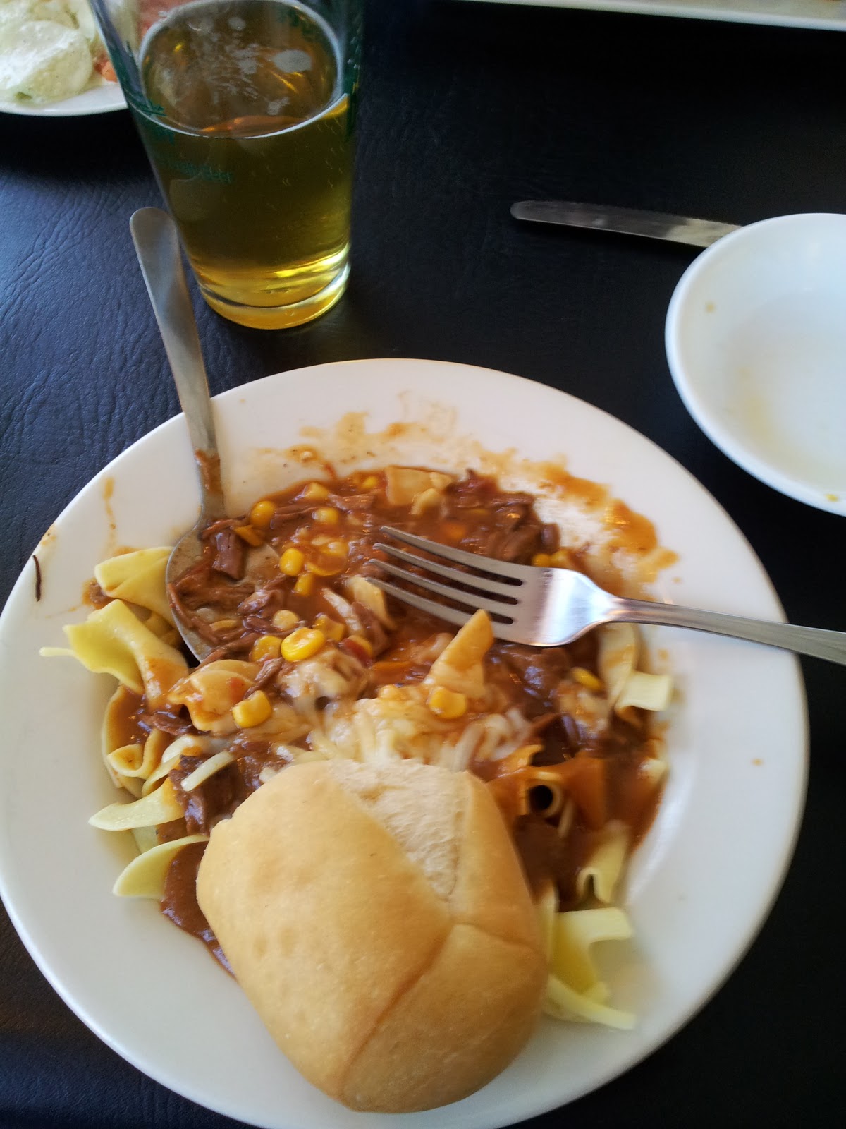 I ended up with Goulash, and an Alcoholfrei Bittburger to drink. I liked the taste of both, my beloved tasted the beer and made a face. Too hoppy, she declared.